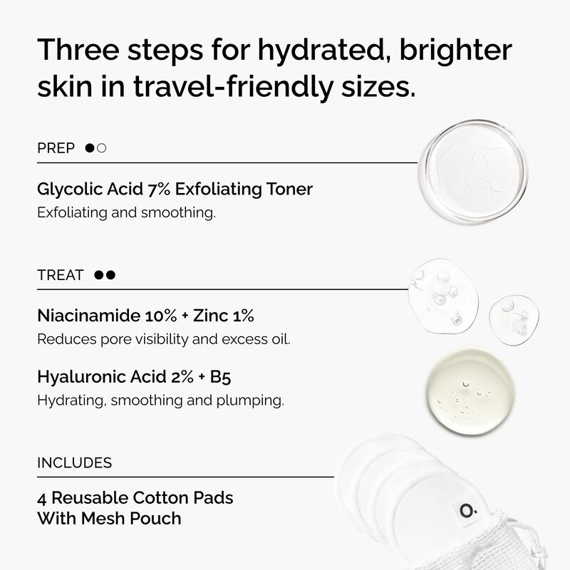 The set also includes The Ordinary’s complimentary reusable cotton pads to support the application of Glycolic Acid 7% Exfoliating Toner.